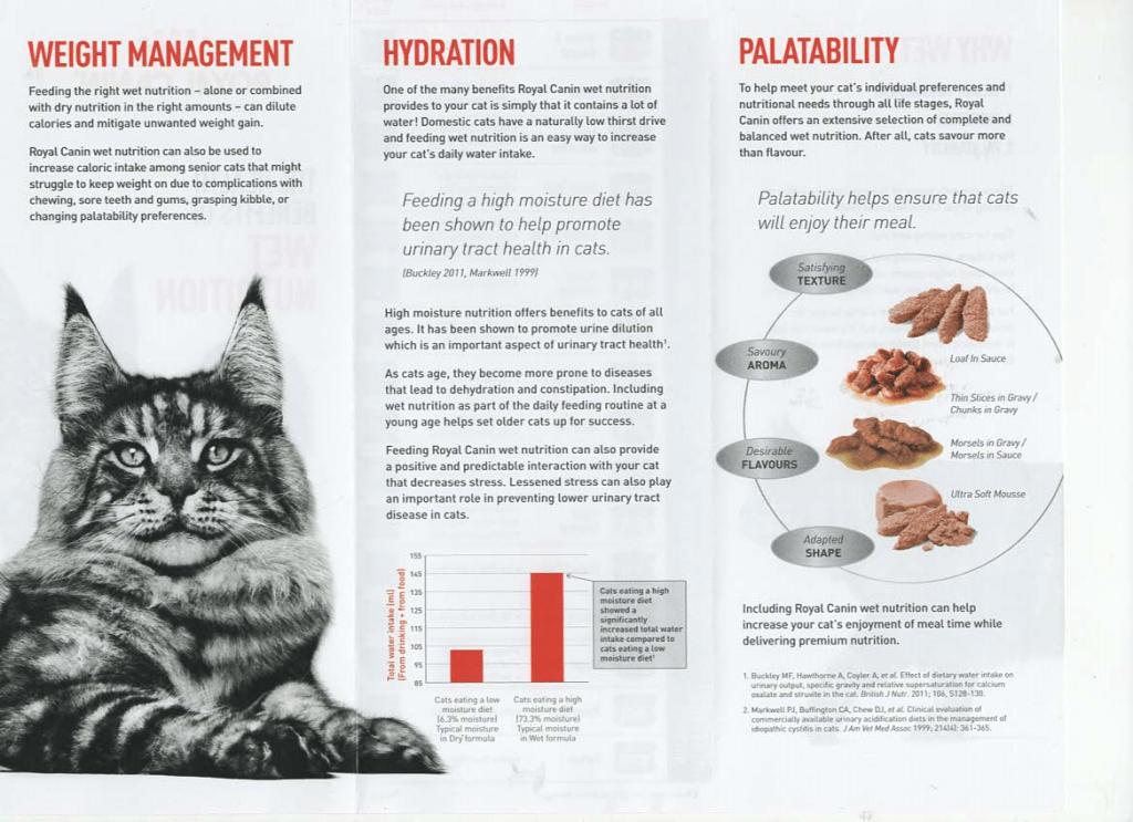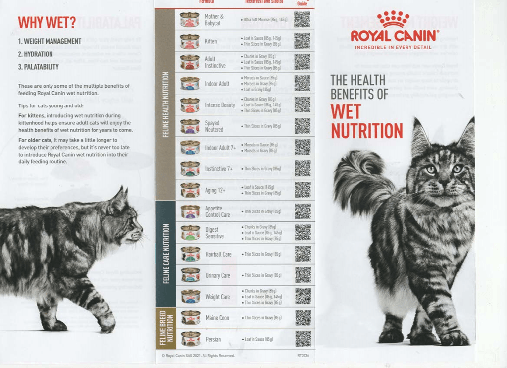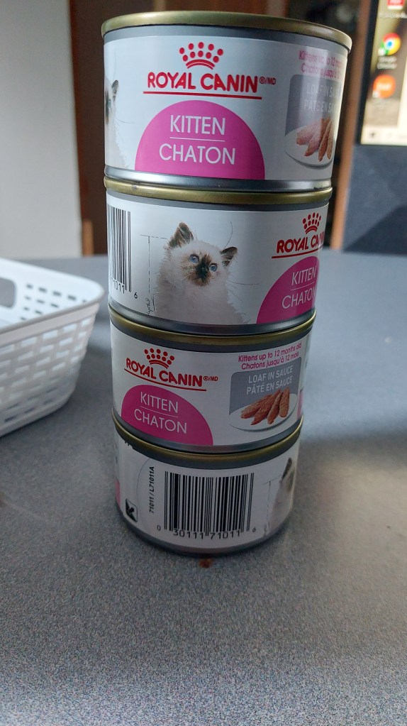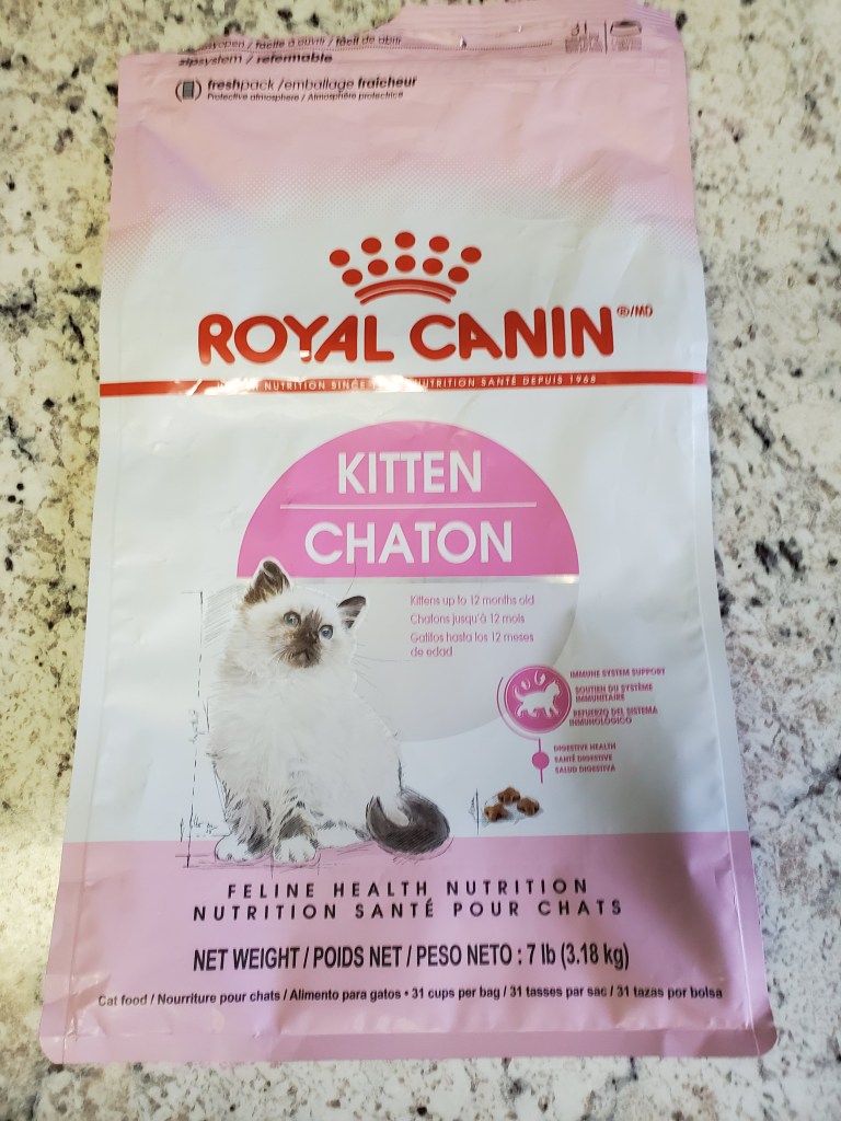 Royal Cannin food. I give wet food in the morning between 7 to 9 am and 5 – 7 pm about 1/4 of a can per serving for a 12 – 14 week old kitten. Dry food is out 24/7 for them free choice. All the dishes need to be washed/sanitized daily. Kitten food until they are 1 year old. Your vet may want you to change earlier if kitten is getting overweight. Ragdolls are to have a chubby belly. You should always trust your vet first. I am not a nutritionist, vet or have any degree in that area.