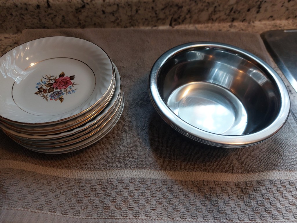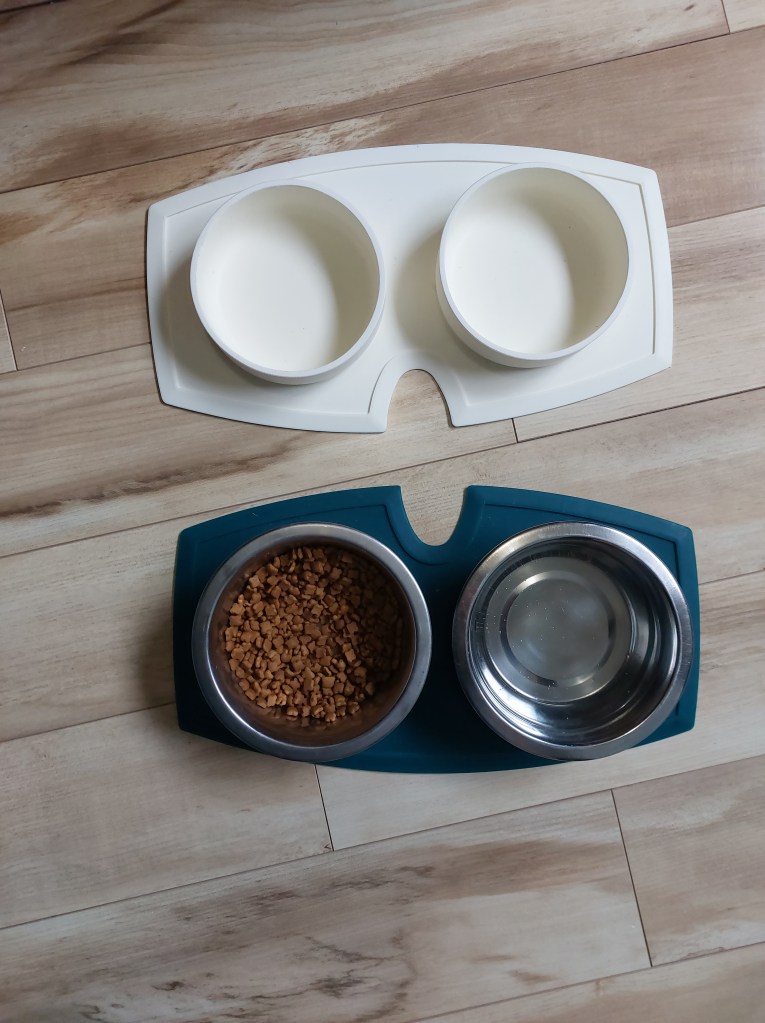 I use glass and stainless steel. Plastic dishes tend to give them chin acne.